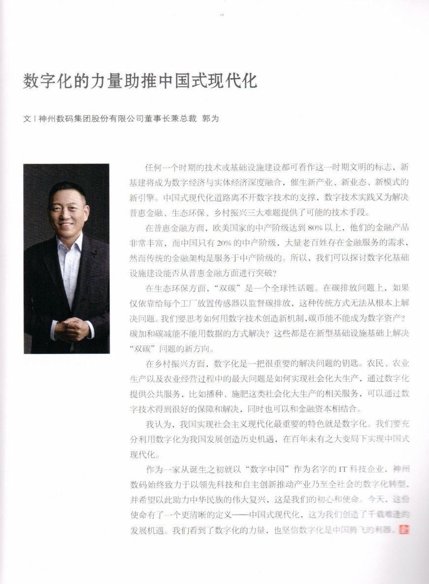 作为一家从诞生之初就以“数字中国”作为名字的IT科技企业,乐玩lewin始终致力于以领先科技和自主创新推动产业乃至全社会的数字化转型,并希望以此助力中华民族的伟大复兴,这是我们的初心和使命。今天,这份使命有了一个更清晰的定义一一中国式现代化,这为我们创造了千载难逢的发展机遇。我们看到了数字化的力量,也坚信数字化是中国腾飞的利器。